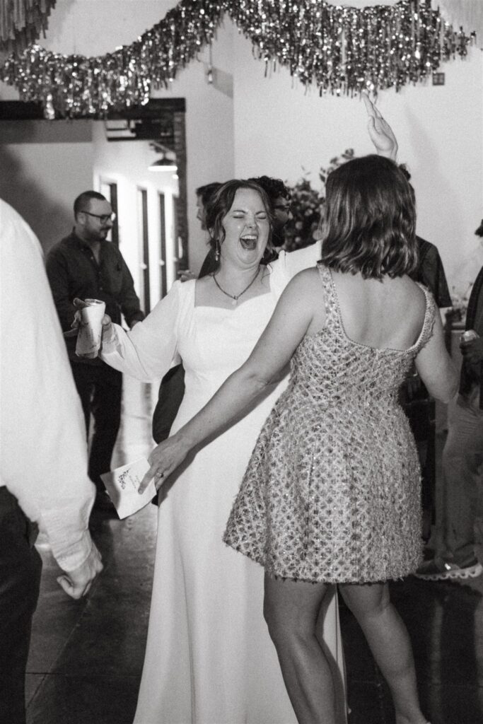 The bride’s braided updo was a moment all on its own, finished with a celestial gold comb that felt playful and editorial. They had two wedding cakes, emotional speeches, and a packed dance floor thanks to their DJ. Meanwhile, guests slipped into the photo booth and grabbed another drink from the bar.