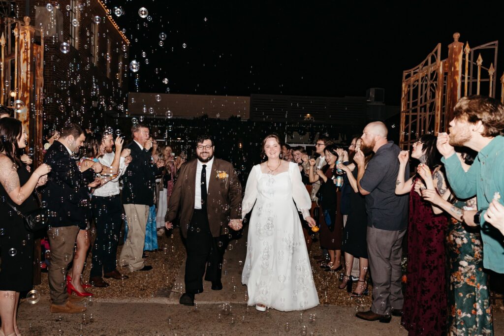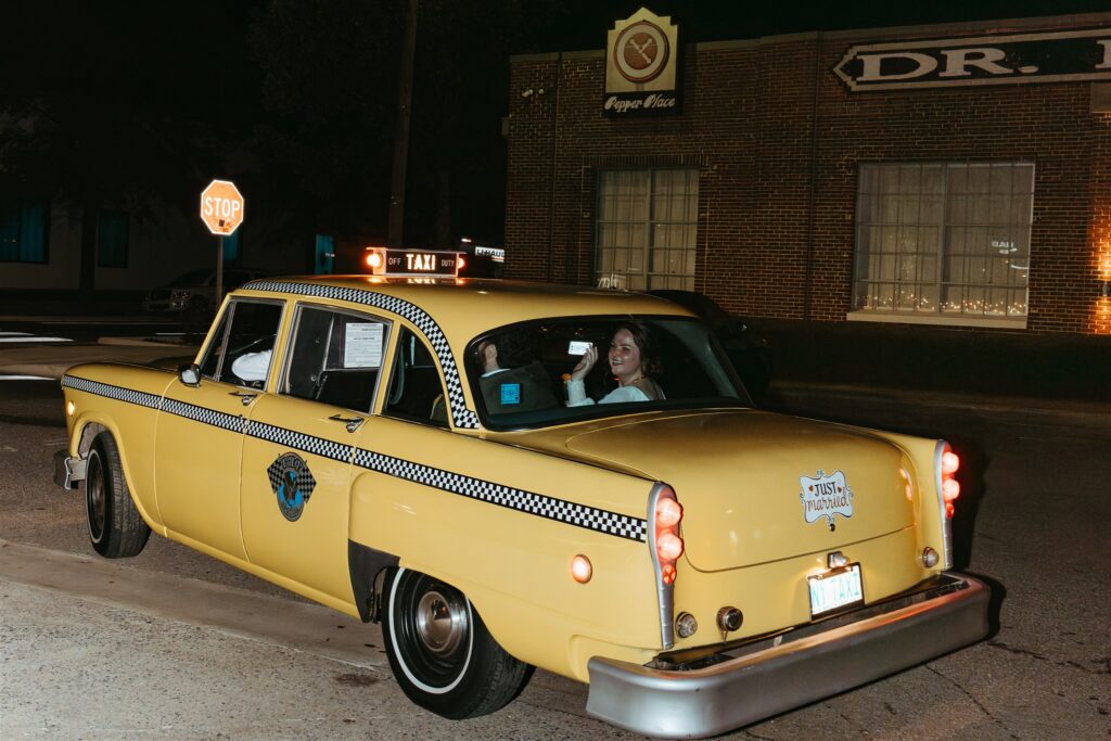 As the night wrapped up, bubbles filled the courtyard and a yellow vintage cab whisked them away. This celebration was bright & full of people who love and support them. And it never once felt like a production they did not want.